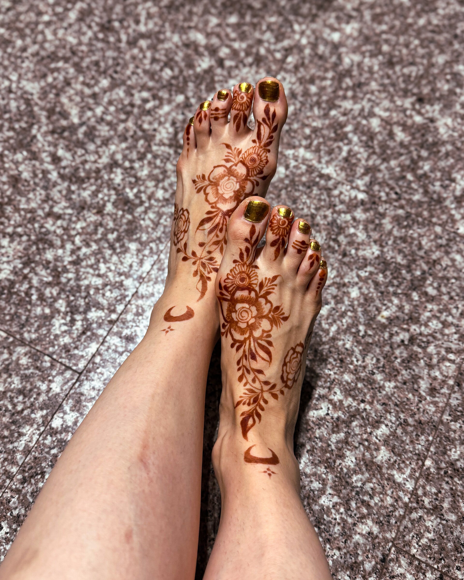 Malując moje wzory – od tradycyjnych indyjskich i arabskich motywów po nowoczesne inspiracje tatuażami i projekty tworzone na zamówienie, używam wyłącznie naturalnej henny i jaguy, aby zapewnić bezpieczeństwo i piękny efekt. Henna i jagua utrzymują się na skórze przez około 1-2 tygodnie.